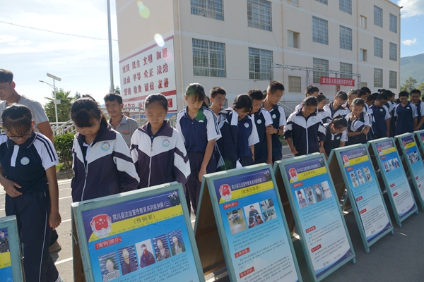 近日,宾川法院刑事审判庭到大营中学开展阳光司法活动,公开审理并当庭宣判了一起非法持枪案,大营中学全体师生以及学生家长代表共400多人旁听了案件审理,法官和人民陪审员结合庭审以案释法,进行了青少年预防犯罪教育,师生们还在现场观看了法治宣传展板。