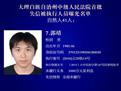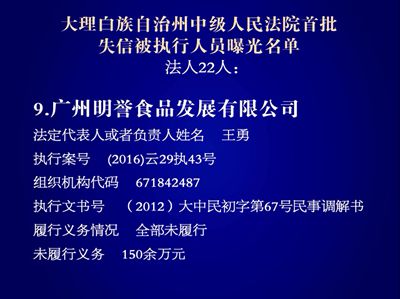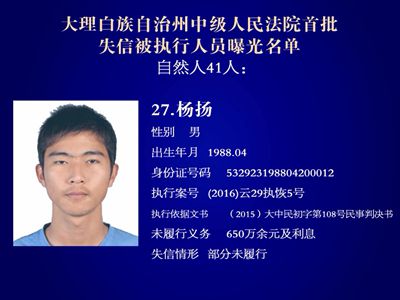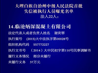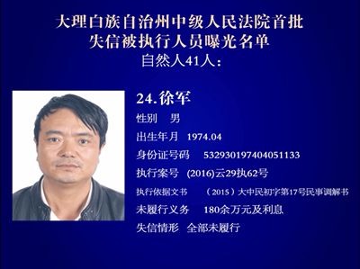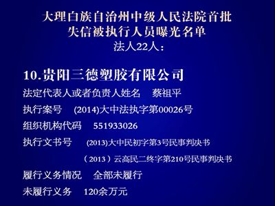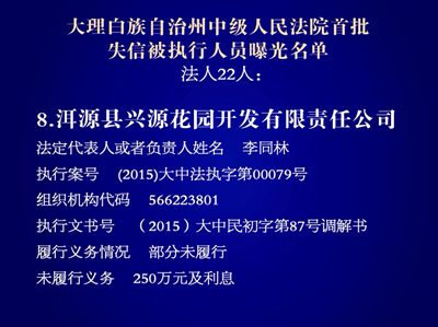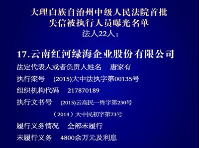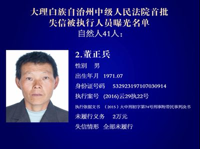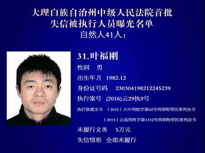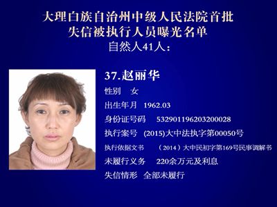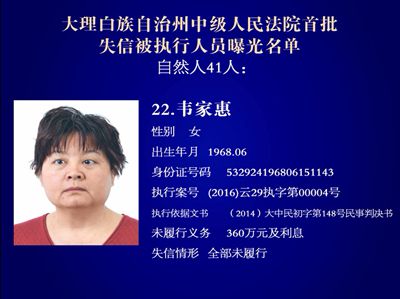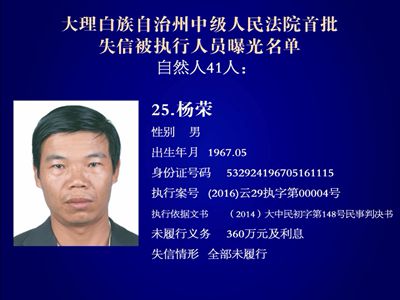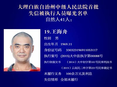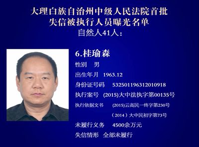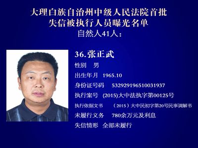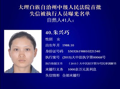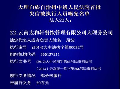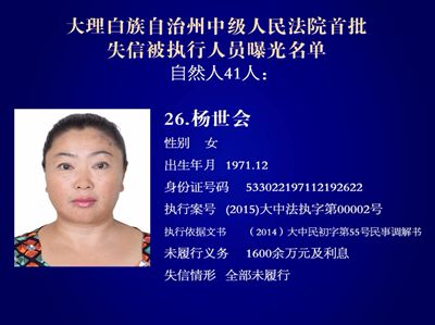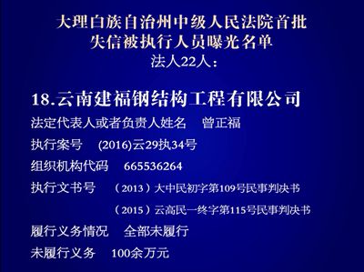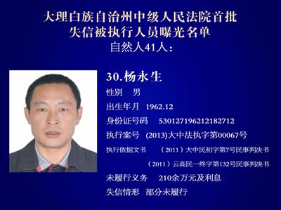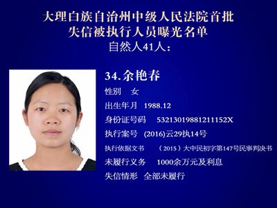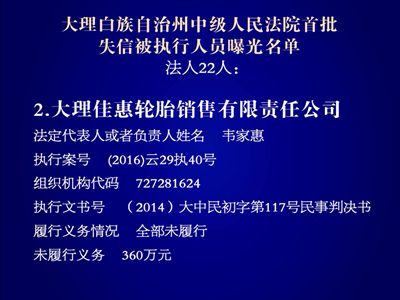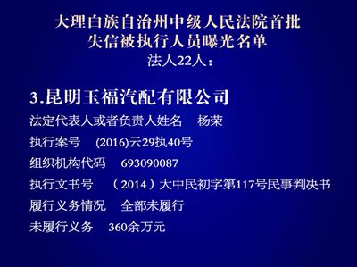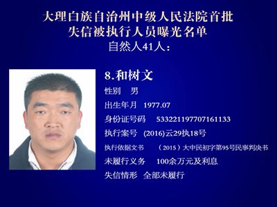 大理白族自治州中级人民法院首批失信被执行人曝光名单